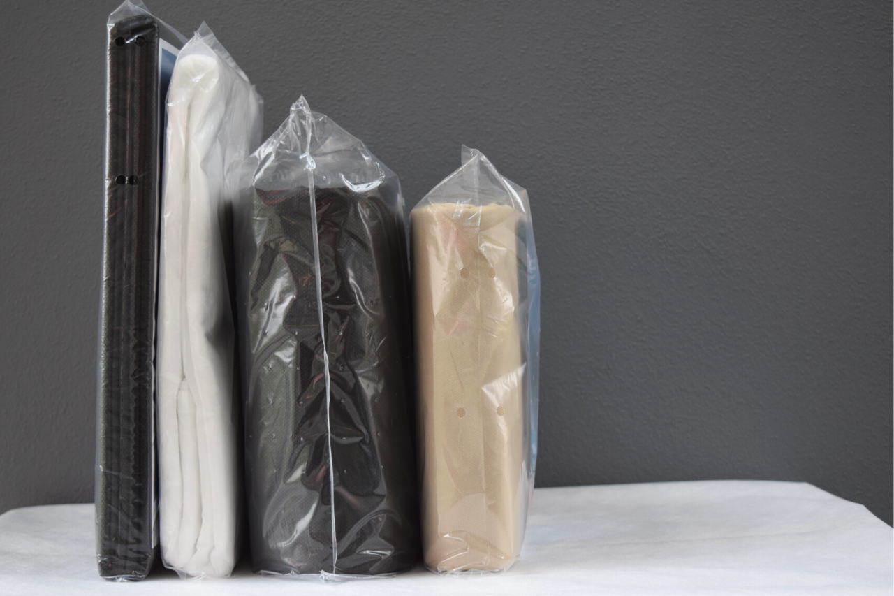 Balíčky netkané textilie na zahradu nebo třeba jutové dekorační tkaniny balíme do fólie. Na rozměrech finálního balíčku se s vámi domluvíme. Můžeme ho přizpůsobit rozměrům, které preferuje hobbymarket – díky tomu se prodejci do regálu vejde více zboží.