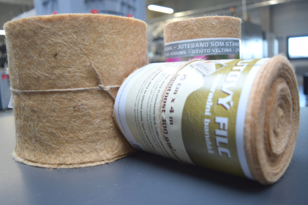 Některé role není třeba balit do plastových obalů. Například na roli jutového pásu umístíme papírovou etiketu a celé balení zajistíme provázkem.