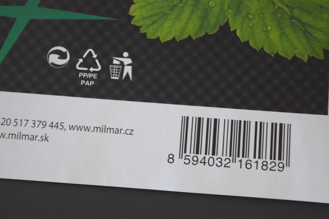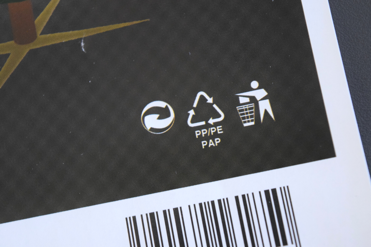 Také si pohlídejte, aby byla etiketa v souladu se zákonem o odpadech. Ten v některých případech vyžaduje uvedení materiálu, ze kterého je vyrobený obal (pro snadnější třídění při recyklaci). Používejte standardizované číselné a písmenné symboly dle směrnic Evropské unie.