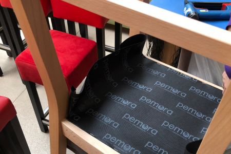 Netkanou textilii můžete využít i jako vhodné místo k vašemu „podpisu“. Hodí se na to černá textilie, která slouží k zakrytí spodní části sedáku. Natiskneme na ni vaše logo a zákazník ho uvidí pokaždé, když rozloží gauč, nebo dá židle nahoru, aby mohl umýt podlahu.
