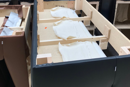 Připravíme vám de facto libovolný tvar – např. čtverce, pruhy nebo výřezy do L. Nábytkářům pak dodáváme celé sady na výrobu pohovky, např. dva boční díly do L, krycí pruh, který přijde dospod sedačky, a čtverce na upevnění sedáků.