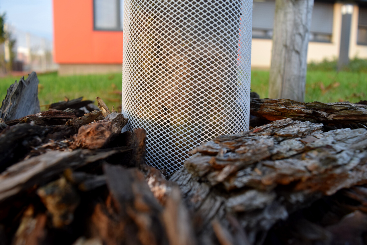 Chránička kmene je vyrobená z plastové síťoviny, která odolává UV záření.