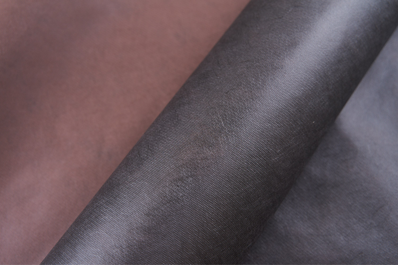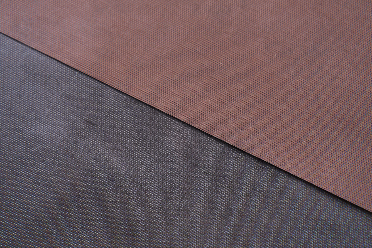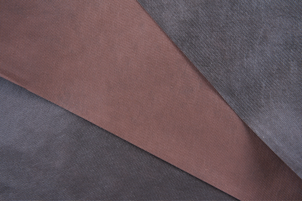Dvoubarevná kompozitní spunbond textilie – černo-hnědá.