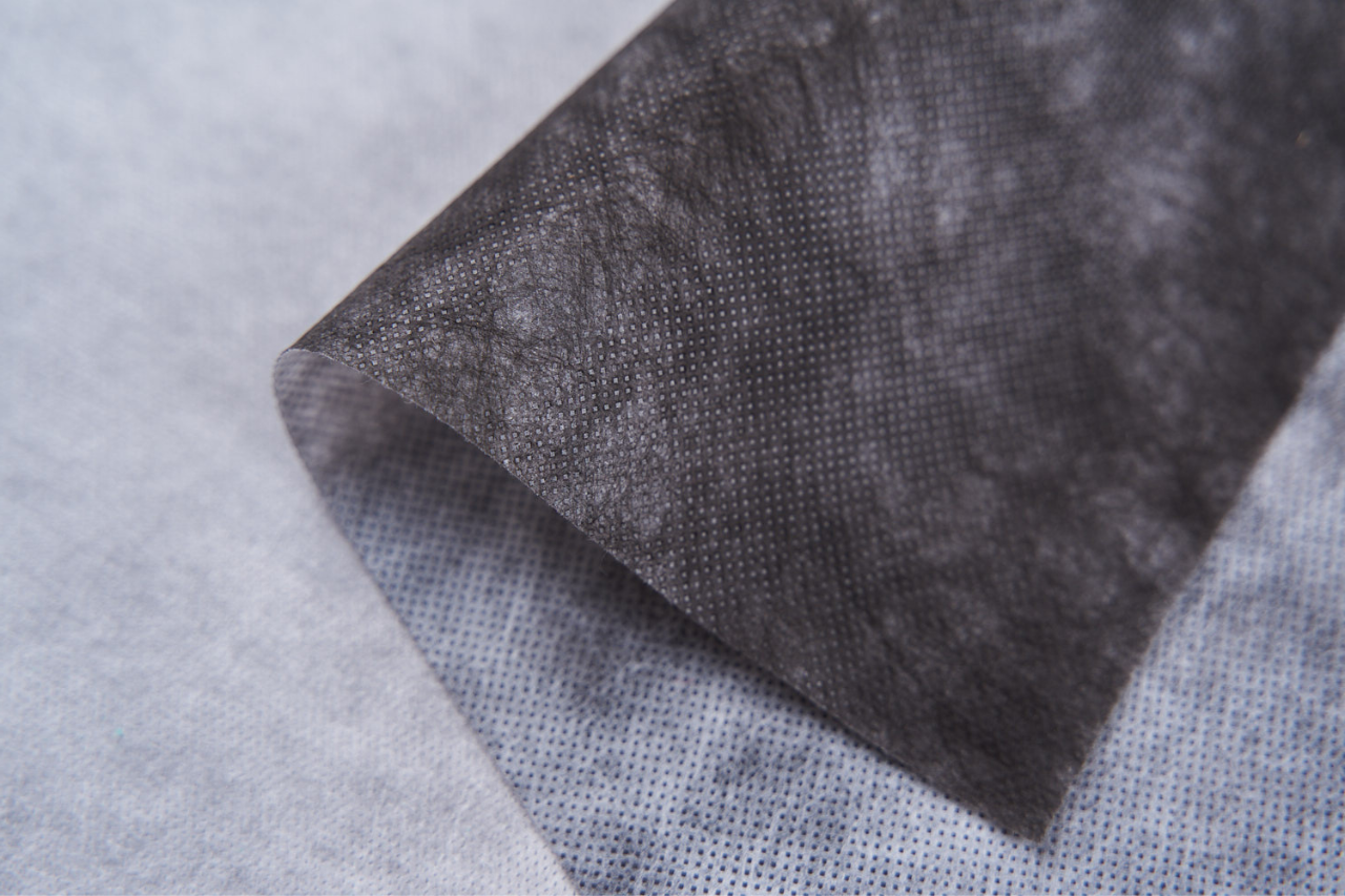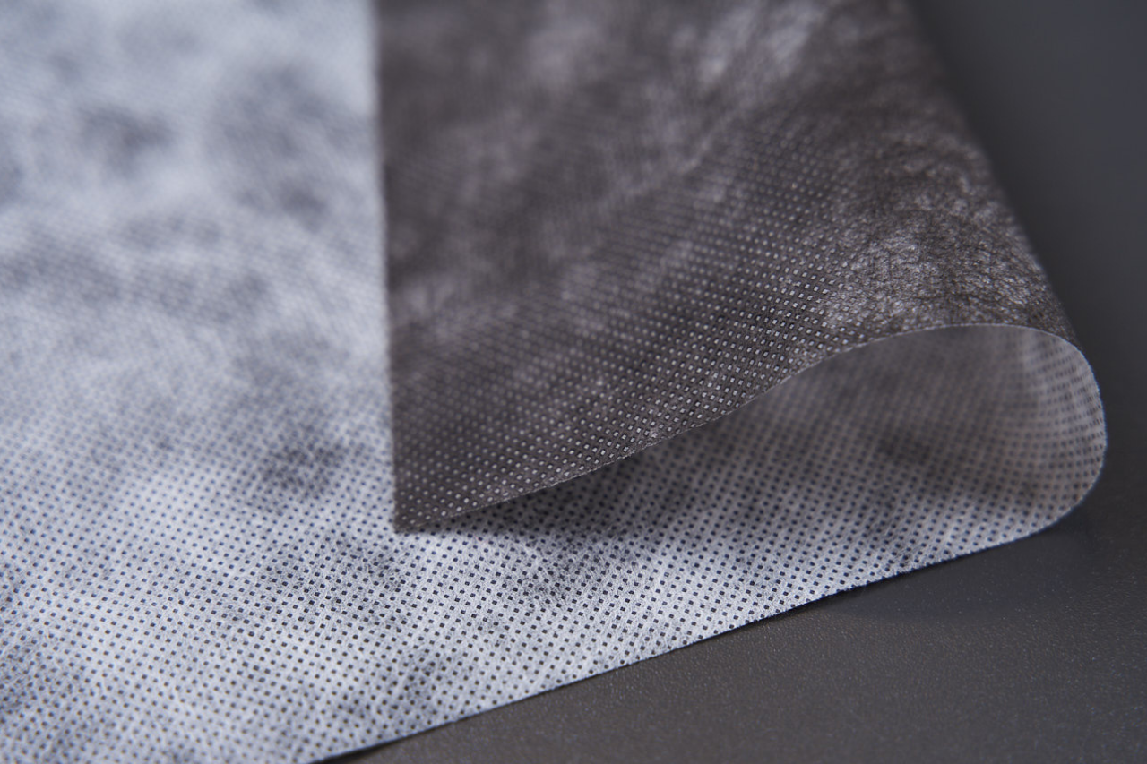 Dvoubarevná kompozitní spunbond textilie – černo-bílá.