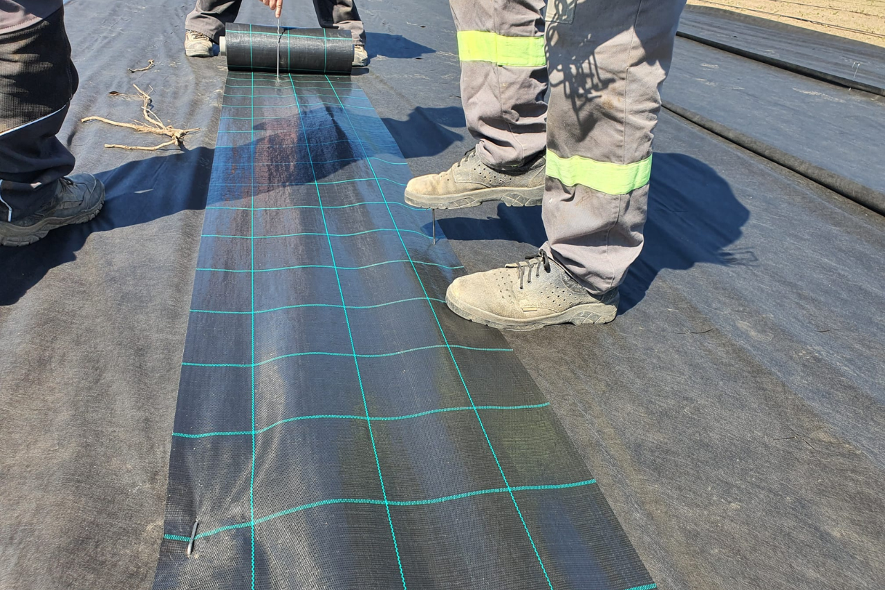 Pokud chcete mulčovat ve svahu, pomůže vám svahová tkaná textilie. Na rozdíl od běžné mulčovací textilie obsahuje vetkané bavlněné pásky. Nekloužou tolik jako plastové pásky u běžné textilie, takže slouží jako pomyslná „zarážka“. Mulčovací kůra pak po textilii nesjíždí a drží na svém místě. Což oceníte hlavně při deštích.